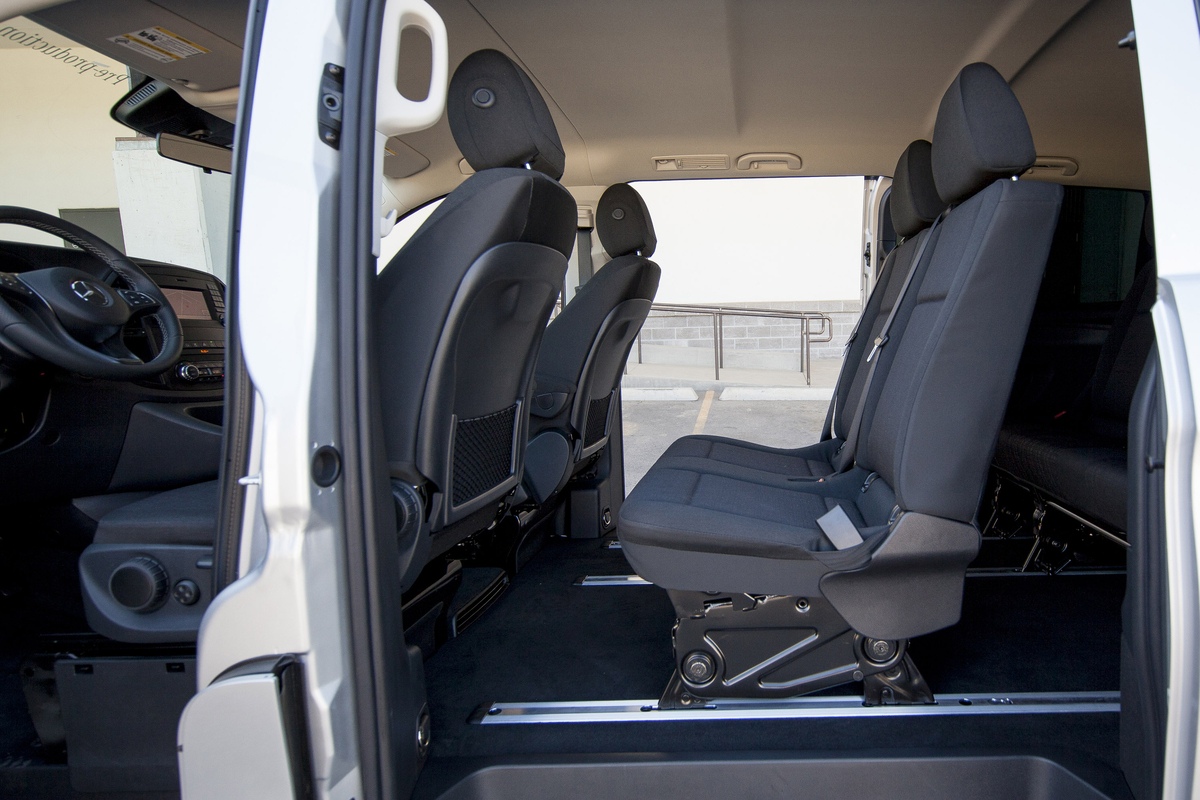 Our Mercedes-Benz Metris Passenger Vans are the right-sized vehicle: It is larger than the small vans and smaller than the large vans. Its value proposition includes superior craftsmanship, high cargo capacity, and an attractive price. It is designed to thrive in large metropolitan areas with an agile yet spacious presence.